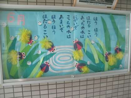 玄関掲示 公開日 2019/06/05 更新日 2019/06/05 お知らせ 6月は「ホタル」の玄関掲示になっています。最近はすっかり見れなくなってしまいましたね。実際にホタルを見たことがないという子どもも少なくありません。 いいね(0)
