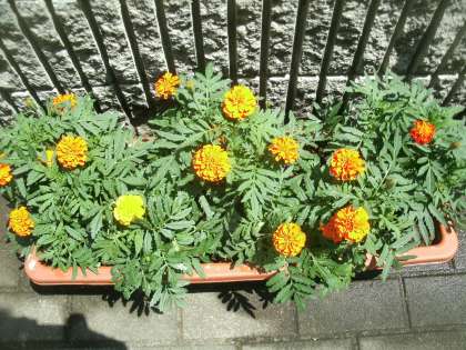 管理作業員さんがプランターに植え付けくださっていたマリーゴールドと百日草が一気に花を咲かせ始めました。登下校する子ども達の目を楽しませてくれています。