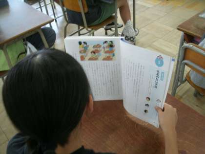 道徳科学習の様子です。道徳が教科化されたのは皆さんご存知だと思います。以前は副読本を使って学習していたのですが、教科化されるに従って、教科書を使っての学習になりました。保護者の皆さんはお子さんの使っている道徳科の教科書をご覧になりましたか。一度、お子さんの道徳科の教科書にあるお話を読んでみてください。