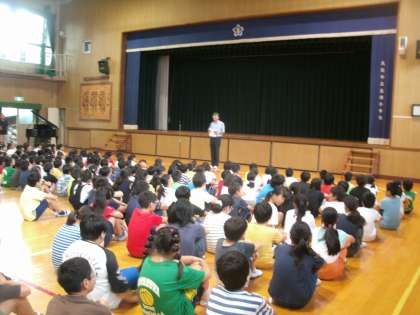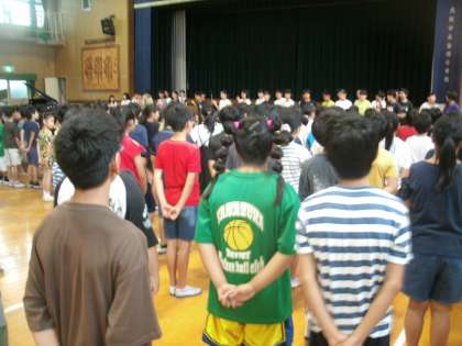 私の話の後、生活指導部長の山田先生から「夏休みの生活について」、そして体育主任の楠原先生から「プール開放について」の話がありました。子ども達はどの学年も落ち着いて静かに終業式に参加していました。