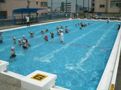 梅雨も明け、天神まつりの行われるこの時期から大阪の街に本格的な真夏の暑さがやってきます。今日の低学年プール開放は28名の参加者がありました。1・2・3年生は全体で89名ですから、約30%の参加率になります。思っていたよりも少ないので残念に思っています。体調さえ良ければ参加してほしいですね。もちろん、全員というわけにはいきませんが、参加率50%くらいになってほしいものです。