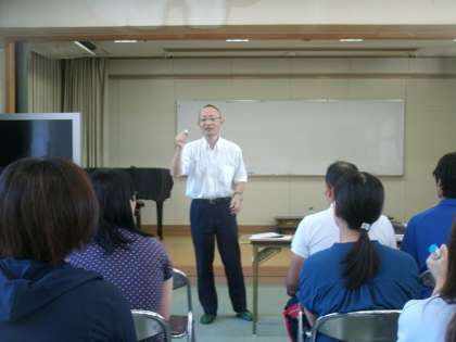 午後2時より、学校薬剤師の前田健輔先生をお招きして「アレルギーに関する研修会」を実施しました。アナフィラキシーについて学んだ後、練習用エピペントレーナーを使って、練習をしました。