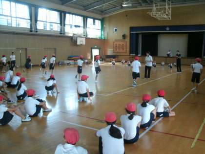 高学年が体育館に集まって練習をしています。集合して、先生の話を聞いている背中からも子ども達のやる気が伝わってきます。今年度から組体操をやめることになり、新しい団体演技に取り組む子ども達。色々な困難はあるかと思いますが、金塚小学校の運動会に新しい1ページを刻みこんでくれると思います。