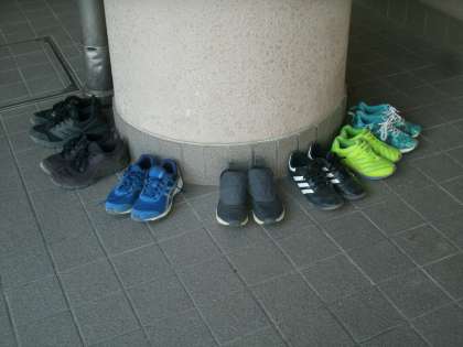 最後の写真は6年生が体育館前に脱いでいた下靴です。常に子ども達には「靴は揃えましょう」と言っています。確かに揃っていますね。この感覚が素晴らしいので紹介してみました。まさに「いいね」というわけです。