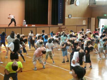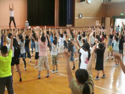 今日は運動会に向けて「ラジオ体操第1」の練習をしました。いくつかの体操を取り上げて、動きの中で気をつけることを再確認しながら進めました。運動会の開会式が終わった後、最初の演技種目として全校児童で取り組むのが「ラジオ体操第1」です。181名の児童一人一人が精一杯腕を伸ばしたり、身体をひねったり・・・。そんなラジオ体操第1で運動会の演技・競技がスタートになればと思っています。