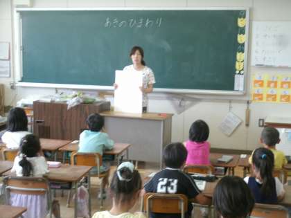 1学期に立派な花を咲かせた向日葵を描いた子ども達。夏休みが終わり、向日葵の花はすっかり盛りは過ぎてしまったけれど・・・。そんな向日葵の花を子ども達は再び描いていくことになります。しっかり見ると種子がいっぱいできているんです。子ども達にとっては、それも大切な学習です。