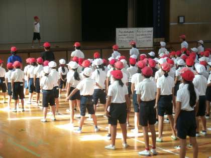 2回目の全体練習を行いました。今日は体育館で校歌・運動会の歌の練習をしました。