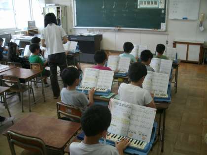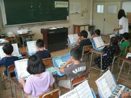 音楽科学習の様子です。今日はみんなで鍵盤ハーモニカを使って「山のポルカ」を合奏していました。