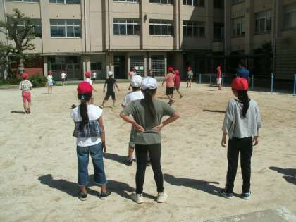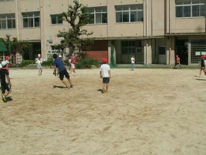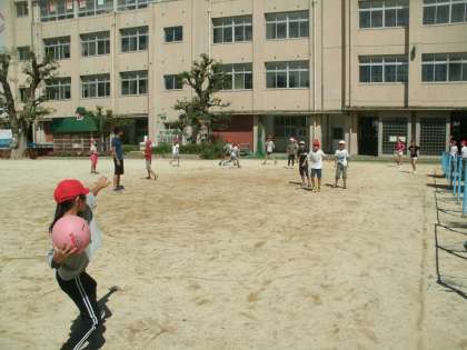 とてもいい天気になりました。担任の先生も子ども達と一緒にドッジボールをして遊んでいました。