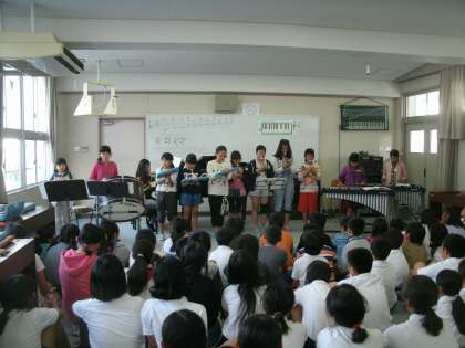 10月14日(火)前期のクラブ最終ということで、音楽クラブの発表がありました。音楽室には多くの子どもたちや教職員が集まり、「いつも何度でも」の合奏に耳を傾けました。美しい音色と大きな拍手が音楽室に響きわたりました。多くの聴衆を前に練習の成果を発揮した音楽クラブの子どもたちにとっても、すばらしい経験になりました。