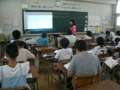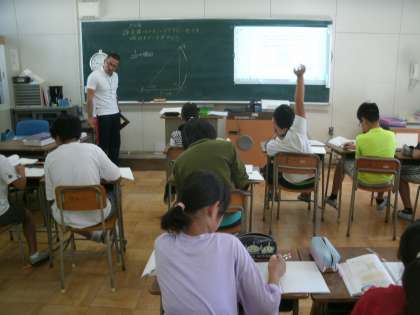 算数科の習熟度別少人数学習の様子です。きょうの学習課題は「直接はかることのできない長さを縮図を書いて求めよう。」です。どれだけ正確に縮図を書くことができるでしょうか。