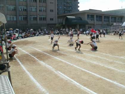 5年生の個人走「獅子奮迅」と6年生の個人走「ラスト 徒競走」の様子です。