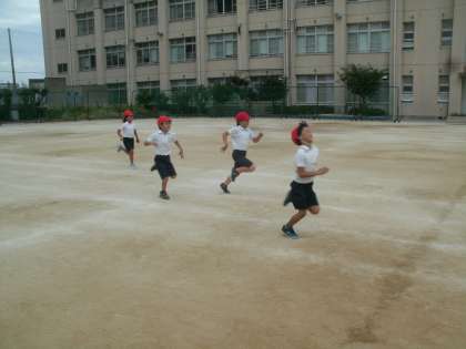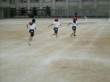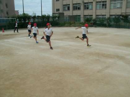 50m走の記録をとっていました。5月に実施したスポーツテスト。その時の自分の記録と比べてみよう。早く走れるようになっていたかな。自分への挑戦ですね。