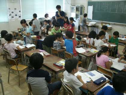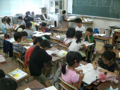 国語科学習の様子です。「サーカスのライオン」というお話です。3年生の保護者の皆さんは読んでいただけましたか。今日の学習課題は「夜のさん歩で男の子に出会ったときのじんざの気持ちを考えよう。」です。グループで話し合いを進め、じんざの気持ちについて考えていきます。金塚プライドの柱の一つである「優しい話し方と温かい聞き方」を身に付けさせるために全ての教育活動で話し合い活動を取り入れています。