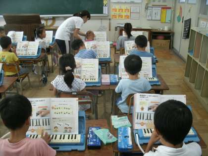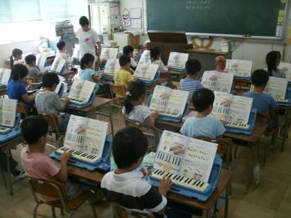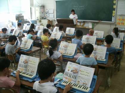 音楽科学習の様子です。鍵盤ハーモニカの練習をしていました。私は、子ども達が初めて鍵盤ハーモニカに取り組んだ時の授業も見ているのですが、今日は子ども達の成長している姿をみることができました。とても上手になって、しっかり鍵盤を押さえることができていました。何より良かったことは、最初はあっちで「プワーン!」こっちで「パオーン!」と鳴らしてはいけない時も音を出す子どもがいたのですが、その状態がすっかり解消されていました。よく我慢できるようになりましたね。