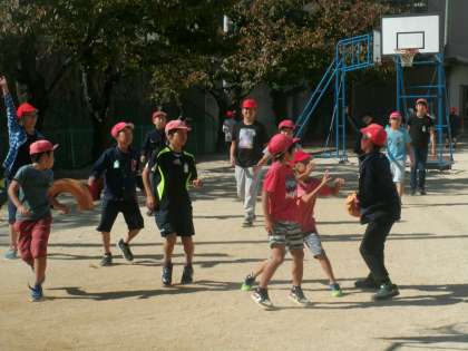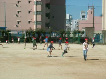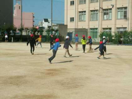 小春日和のいい天気です。休み時間になると、子ども達がたくさん運動場に出てきて遊んでいます。