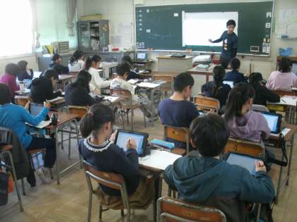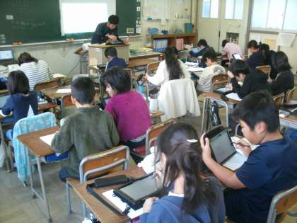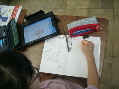 算数科学習の様子です。1人に1台ずつのタブレットを使って学習しています。もちろんアナログのノートもしっかり書きますよ。今日の学習課題は「○の数を工夫して数えよう。」です。