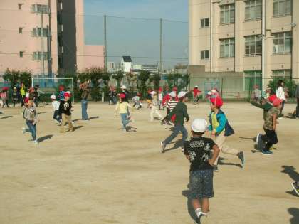 児童集会 公開日 2019/11/07 更新日 2019/11/07 お知らせ 今日は「バナナ鬼」で楽しみました。「バナナ鬼?」鬼にタッチされると両手を上げてその場所でバナナになります。でも、味方2人にタッチされると、再び逃げることができるというルールになっています。両手を上げてバナナになりながら「助けてー!」と大きな声を出している子ども達がたくさんいました。 いいね(0)