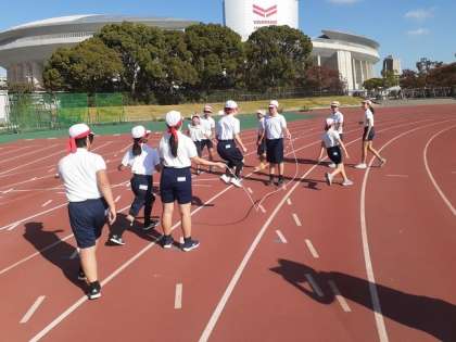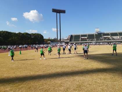 阿倍野区の6年生921名が集まり、仲良く交流することができました。金塚の6年生はマナーも良く、サッカーやドッジボールなどの対抗ゲームではフェアプレイで頑張りました。とても誇らしく感じました。