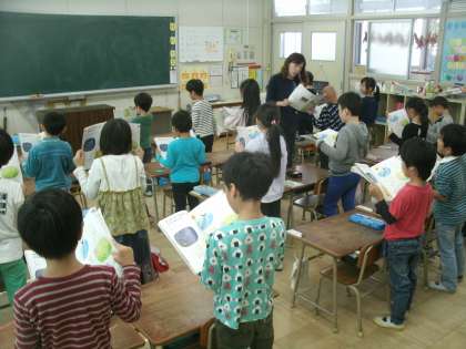 音楽科学習の様子です。みんなで楽しそうに歌っていました。めあては「かしをたいせつにしてうたいましょう。〜ようすをおもいうかべましょう。〜」です。