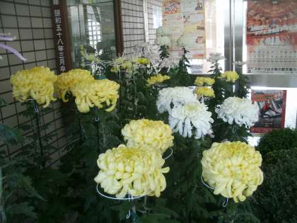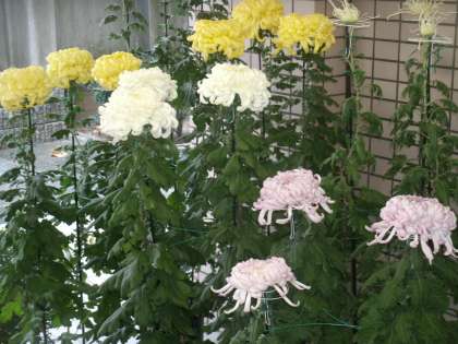 「管もの」(写真1)も「厚もの」(写真2・3)も満開になりました。小菊も少しずつ花を開かせ始めました。