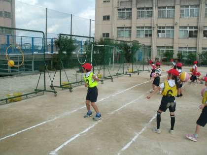 的当てゲーム(2) 1年生 公開日 2019/11/14 更新日 2019/11/14 お知らせ 的に当たれば自分自身で赤い玉を得点のサークルに置いていきます。的の遠くから当たれば3点。近くなれば2点、1点となります。何点を狙うのか。これも作戦の一つです。 いいね(0)