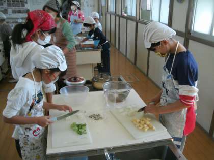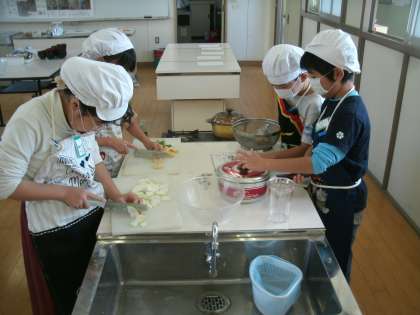 昨日の1組に続いて、今日は2組が「ご飯とみそしるを作ろう。」に取り組んでいます。