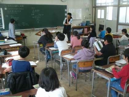 理科学習の様子です。「空気の温度と体積」という単元を学習しています。今日は「丸底フラスコを温めるとせんが飛び出したのはなぜだろう。」ということについて考えています。子ども達が予想したことを発表しています。