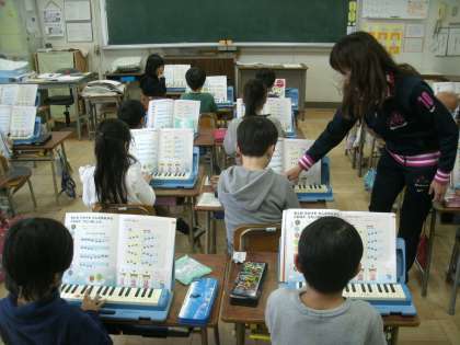 音楽科学習の様子です。鍵盤ハーモニカで「どんぐりさんのおうち」を練習していました。初めて鍵盤ハーモニカに触れた日も知っていますので、「上手になったなぁ。」と感心してしまいました。
