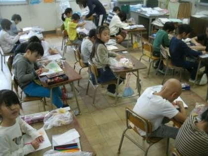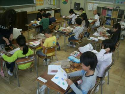 公園で集めてきた落ち葉の上に紙を敷いて、色鉛筆でこすると葉の形や模様が浮き出てくるよ。紙をはみ出しそうな大きな落ち葉もありました。