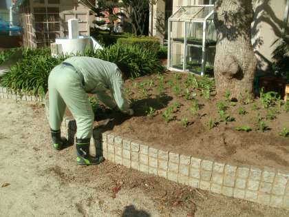 管理作業員さんが花の植え替え作業をしてくださいました。菜の花・ノースポール・キンセンカ・パンジーが植えられました。花が咲くのが楽しみですね。金塚小学校を花がいっぱい咲いている学校にしたいと思っています。