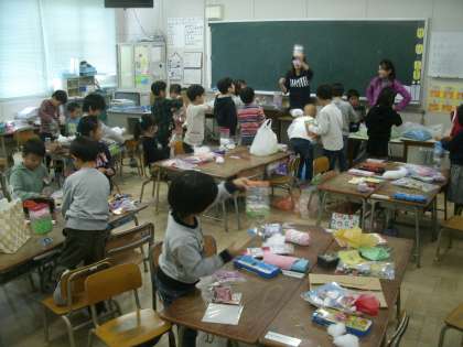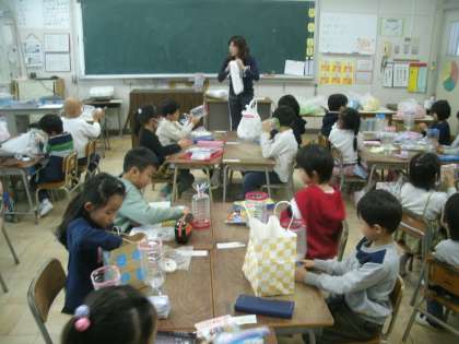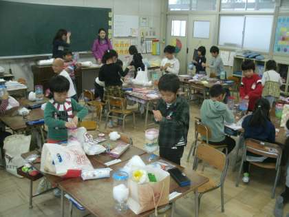 図画工作科学習の様子です。展覧会で展示する作品「おいしいパフェ」を作り始めました。