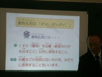 学校薬剤師の前田健輔先生に来ていただき、「薬物乱用の恐ろしさ」に関する指導をしていただきました。
