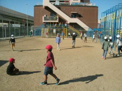 第2運動場の様子です。ジャングルジムやのぼり棒があるので、低学年の子ども達がよく遊んでいます。