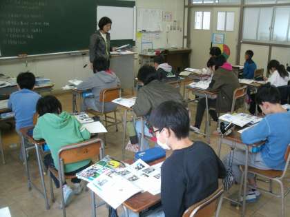 社会科学習の様子です。今日の学習課題は「テレビで放送されるニュース番組はどのように作られているのだろう。」です。この中から将来、ニュース番組を作る側のお仕事をするようになる子どもが出るかもしれませんね。そうなれば、ぜひ、ゲストティーチャーで来てもらいましょう。