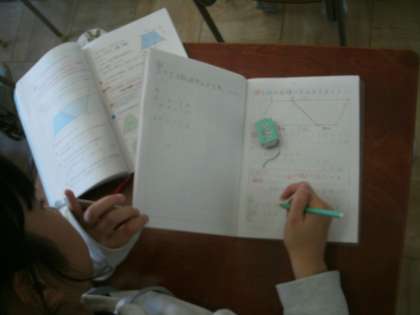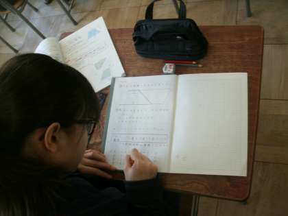 算数科学習の様子です。「台形の面積の求め方」についての確かめをしています。