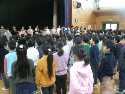 体育館で3学期の始業式を実施しました。残念ながら、体調崩したり、家事都合で欠席する子どもも何人かいて全員出席というわけにはいきませんでした。でも、登校した子ども達は元気よく大きな声で朝の挨拶をしてくれました。