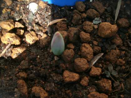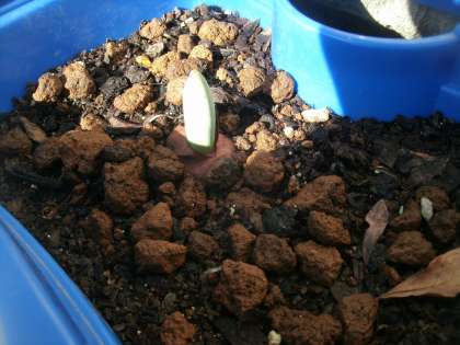 1年生が秋に植えたチューリップ。土の中からかわいらしい芽が顔を出しました。