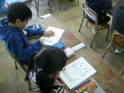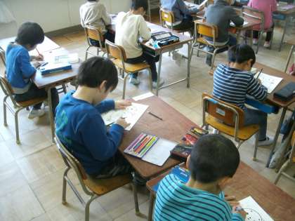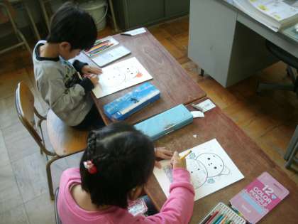「3学期のめあて(学習と生活)」を自分で考えて、丁寧に書いています。色も上手に塗れるでしょうか。