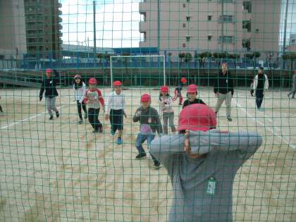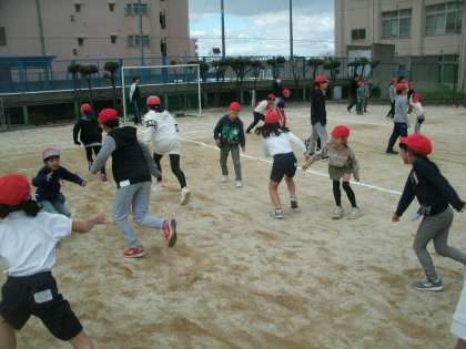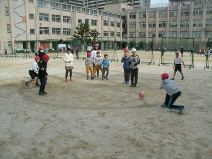 今日は黄緑とオレンジのグループが「ころがしドッジボール」や「だるまさんがころんだ」で遊びました。