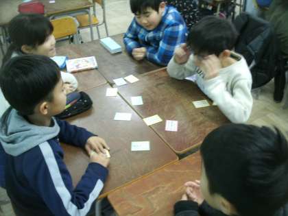 国語科学習の様子です。今日は「百人一首大会」をしていました。」