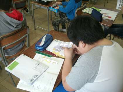 算数科学習の様子です。多角形の角の和の求め方を調べています。