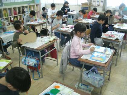 図画工作科学習の様子です。「スペシャル伝言板」作りに取り組んでいます。