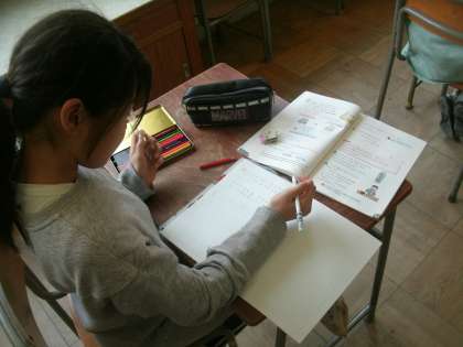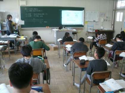 算数科学習の様子です。今日の学習課題は「比べられる量と割合から、もとにする量を求める方法を考えよう。」です。