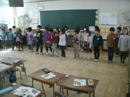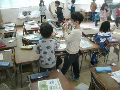 総合的な学習の時間です。最後の学習参観で実施する発表会にむけての練習をしています。