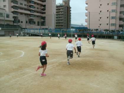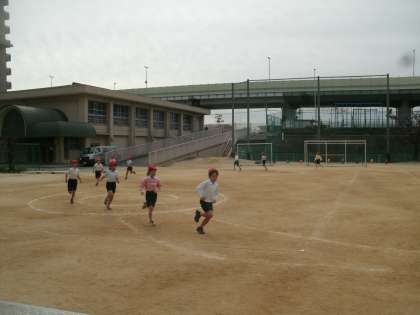 体育科学習の様子です。今日は「走・跳の運動遊び」に取り組んでいました。