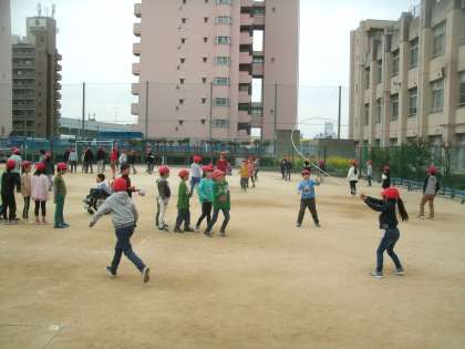今日は風もなく暖かくなったので、たくさんの子ども達が運動場で元気よく遊んでいました。