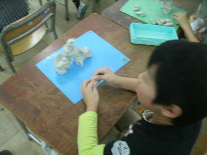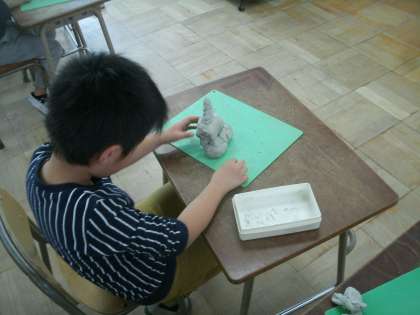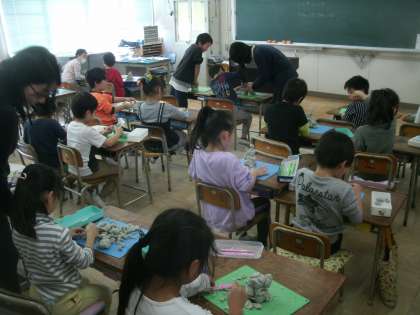 「ひみつのグアナゴ」作りに夢中になっている子ども達です。