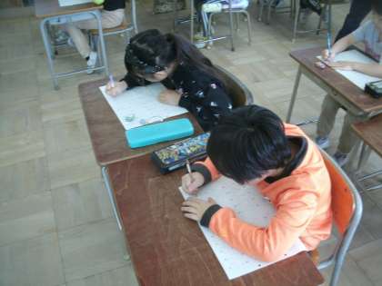 算数科学習の様子です。漢字プリントに取り組んでいます。