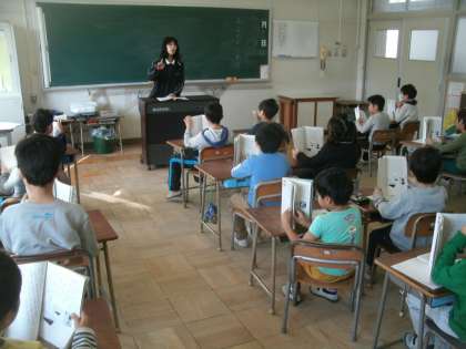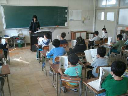 国語科学習の様子です。一人一人、指名された子どもが音読をしています。